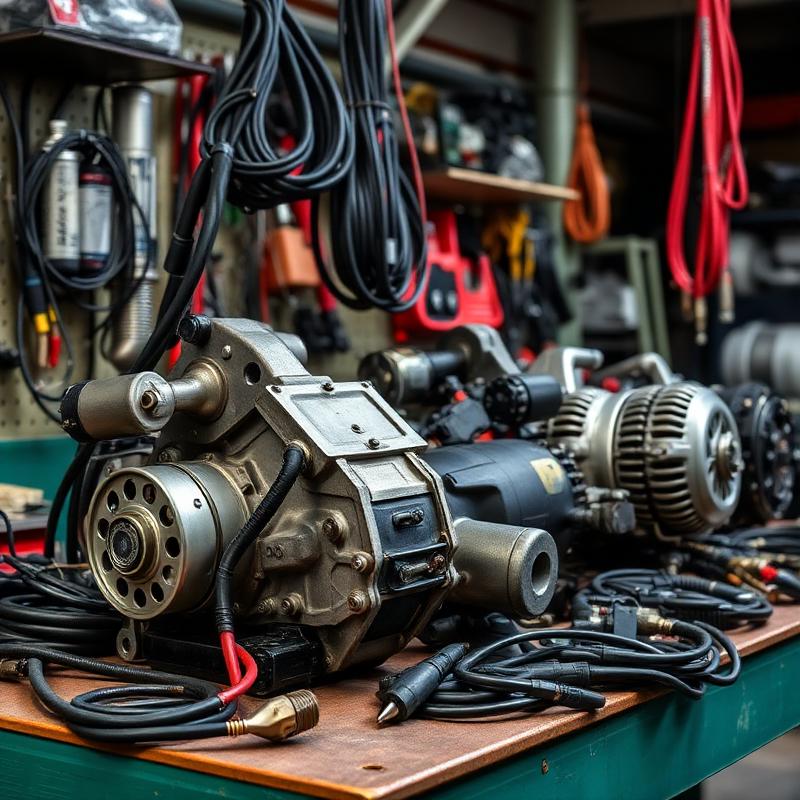 Starters, alternators, batteries, wiring harnesses, and switches.